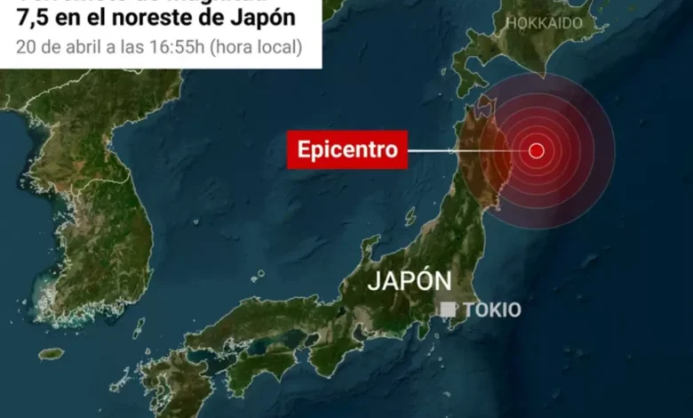 Un potente terremoto de magnitud 7.4 sacudió el norte de Japón este lunes a las 16:53 hora local (07:53 GMT)
