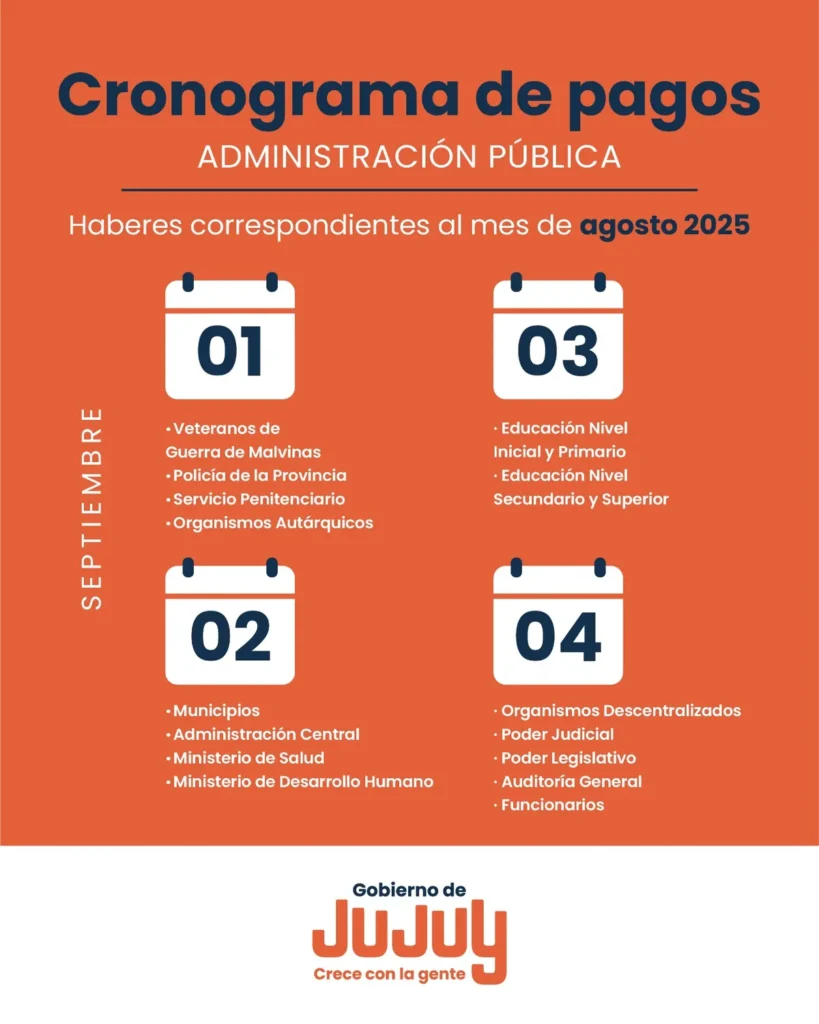 Tesorería de la Provincia anunció el cronograma de pagos correspondiente al mes de agosto de 2025.